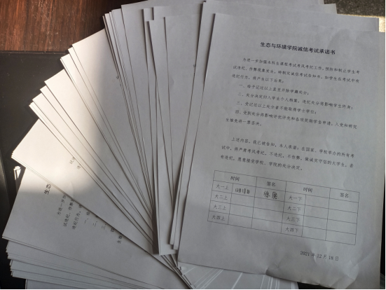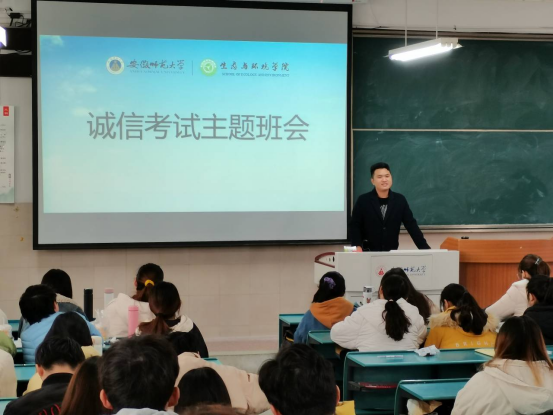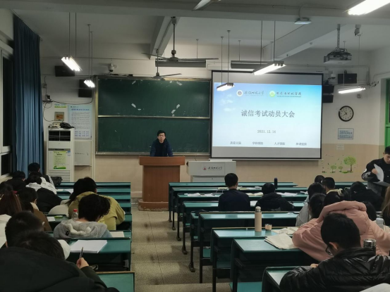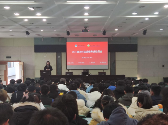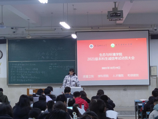 12月18日,金沙城js9线路检测中心召开了2021级新生诚信考试动员会,学院党委副书记杨友谊和2021级生态学拔尖班和环境类专业学生参加了会议。环境专业1班班长首先领学了考场纪律、违反考场纪律和作弊的相关处分条例。随后,杨书记向同学们提出三点希望:一是正确认识对待考试,以考促学,以考促改,提升素质;二是认真准备迎接考试,合理安排,劳逸结合;三是严肃纪律内化于心,外化于行,好好考试。会上发放了诚信考试承诺书,学生们仔细阅读并郑重签名。其他年级和班级也陆续召开了诚信考试动员大会,每一位学生都承诺努力备考、积极迎考、诚信去考、考出实力、考出风采。