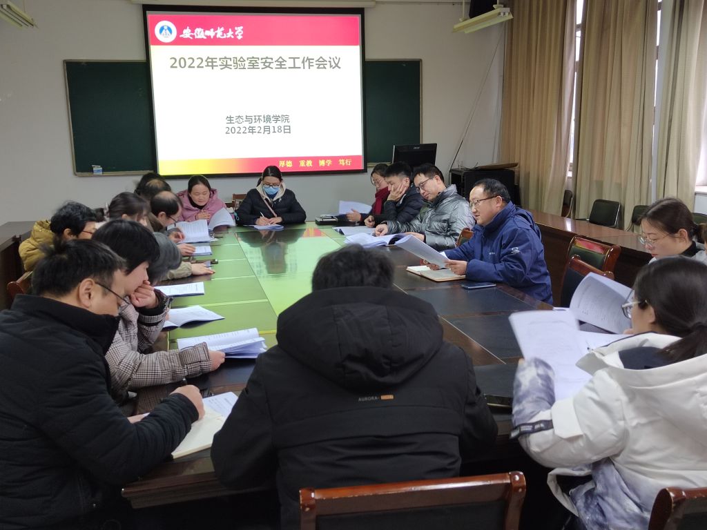 本网讯 2月18日下午,金沙城js9线路检测中心在院行政楼三楼会议室召开了2022年度实验室安全专项行动部署工作会议。会议由副院长甘为民主持,学院实验中心全体教师和科研实验室安全员参加会议。