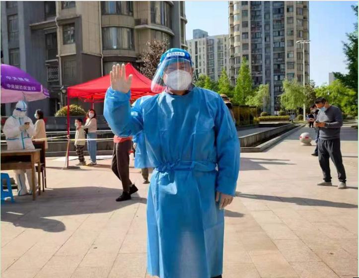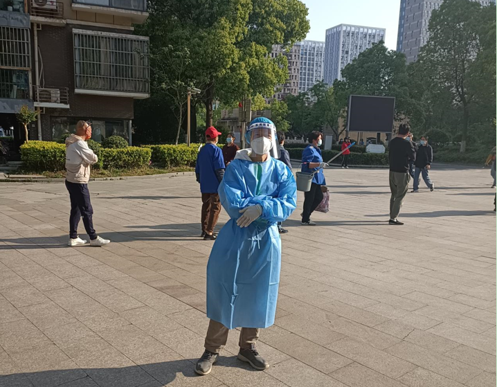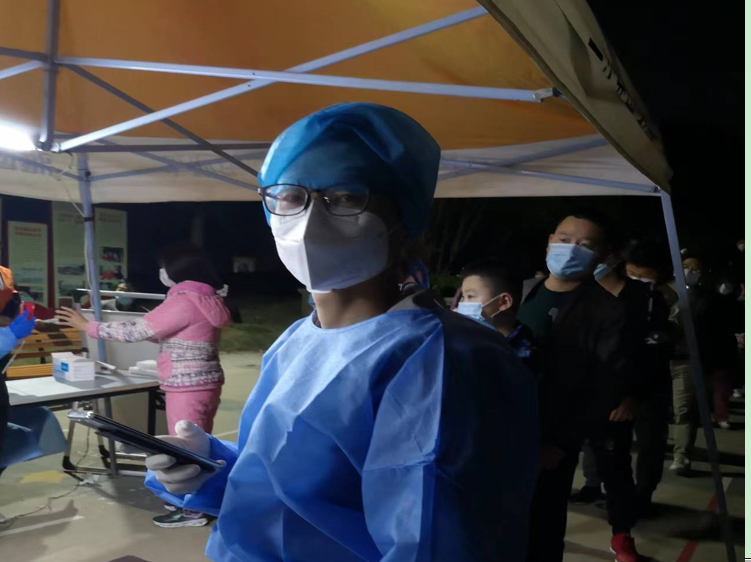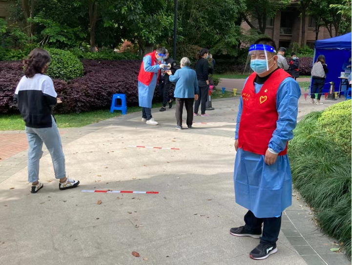 副院长杨如意老师,参加丽城社区文津花园小区核酸采样志愿服务。