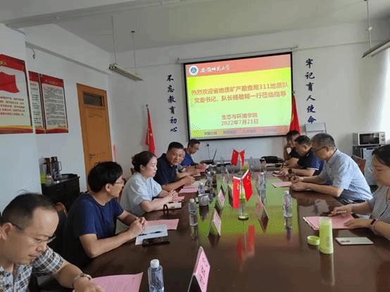 7月21日,应学院邀请,安徽省地质矿产勘查局311地质队党委书记兼队长杨敬明、副队长翁克胜、高分中心主任石磊、项目负责人唐婷来院交流洽谈合作。学院院长胡好远、副院长甘为民、副院长昝逢宇、生态学系主任项贤领、团队负责人王友保和项目负责人杨红飞参加了交流会。