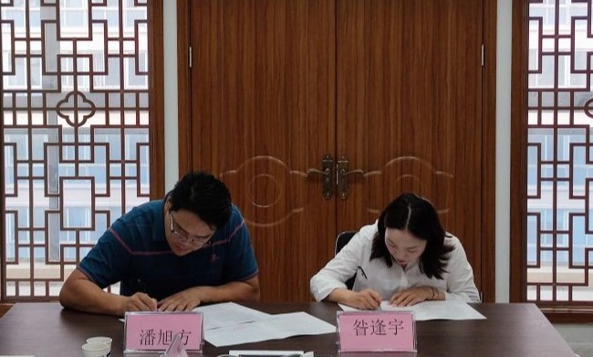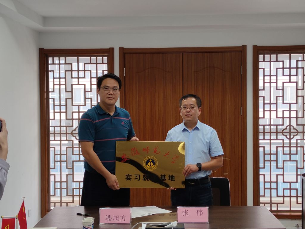 张伟一行在潘旭方等陪同下参观了公司展厅和办公室场所,随后,在公司会议室举行座谈、签约和授牌仪式。潘旭方致欢迎辞并介绍了公司基本情况,张进介绍了公司的环保专家、发展历程、业务范围、科技研发和资质荣誉等,张伟介绍了学校和学院的办学历史、师资队伍、教学科研、人才培养等情况。双方均表示以推进实习就业基地建设为新起点,不断深化合作。与会人员围绕学生实习就业、科研联合攻关、企业文化建设、人才联合培养等方面展开了深入讨论,就下一步推进合作交流达成一致意向,共同希望校企之间要加强深度合作交流,充分发挥各自的优势,实现合作共赢。在大家的共同见证下,双方共同签署了安徽师范大学专业实习就业基地协议书,举行了授牌仪式。