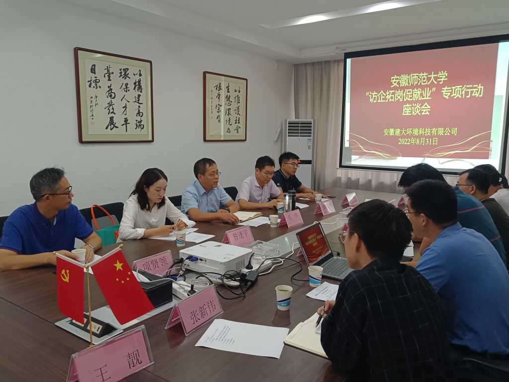 8月31日下午,学院党委书记张伟、副院长昝逢宇、环境工程专业负责人陶海升、生态学专业负责人项贤领、辅导员袁成等赴安徽建大环境科技有限公司开展访企拓岗、共建实习就业基地。安徽建大环境科技有限公司总经理潘旭方、副总经理张进、沈刚等接待了张伟一行。