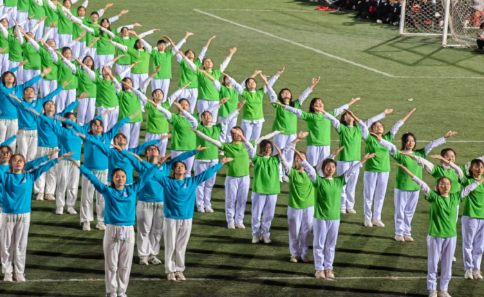 26日晚7时运动会开幕式上,学院的方阵队员身着统一的红色服装,迈着整齐的步伐,气势昂扬走过主席台。在《一起向未来》的排舞表演中,师生队员们面带微笑,朝气蓬勃,动作整齐划一,充满着运动热情。