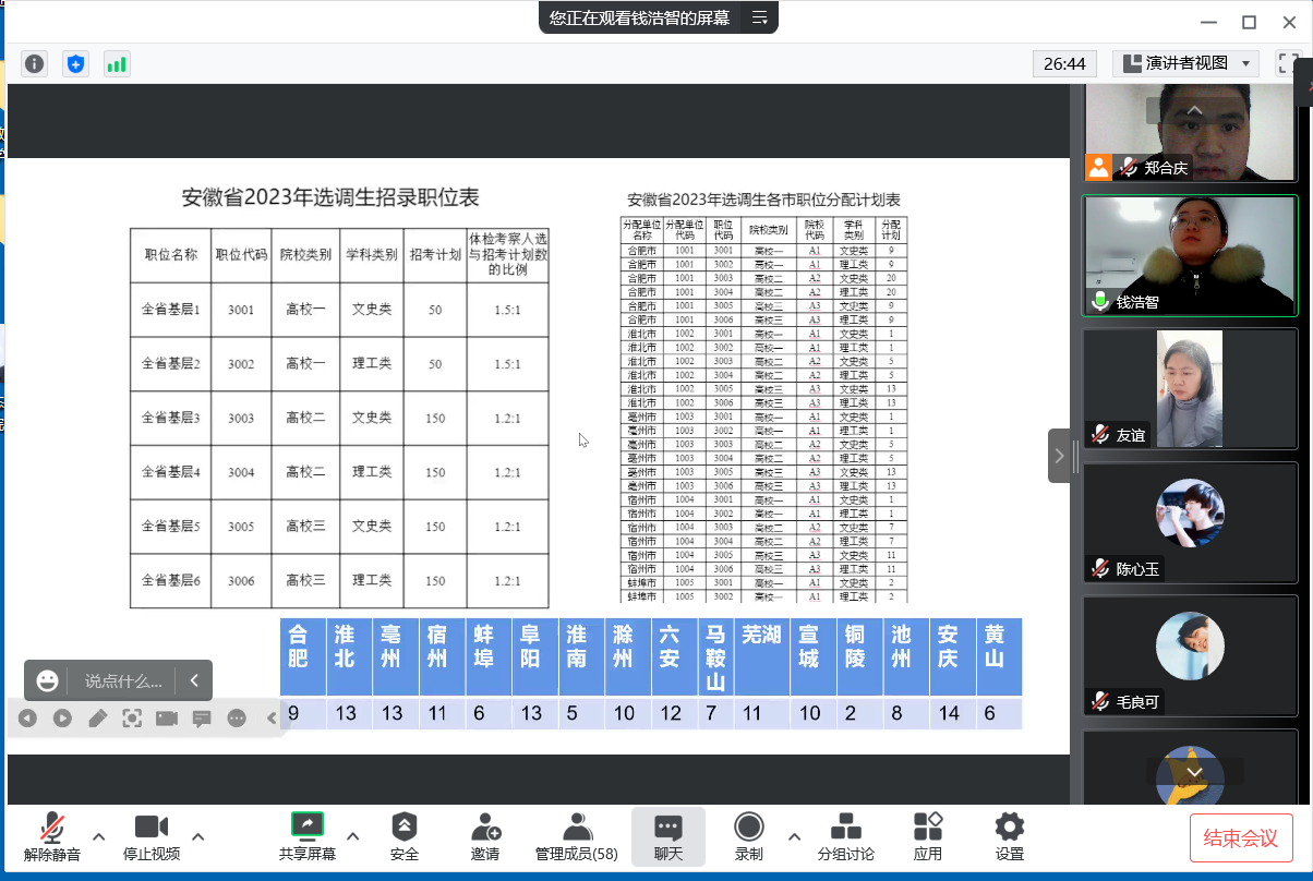 为增强毕业生对选调生政策的了解,鼓励毕业生发挥才能,服务基层。2月2日学院在线上召开了选调生工作动员会,院党委副书记杨友谊,2022年安徽省选调生、学院2019级研究生钱浩智校友,辅导员郑合庆以及毕业班学生党员参加会议,会议由郑合庆主持。