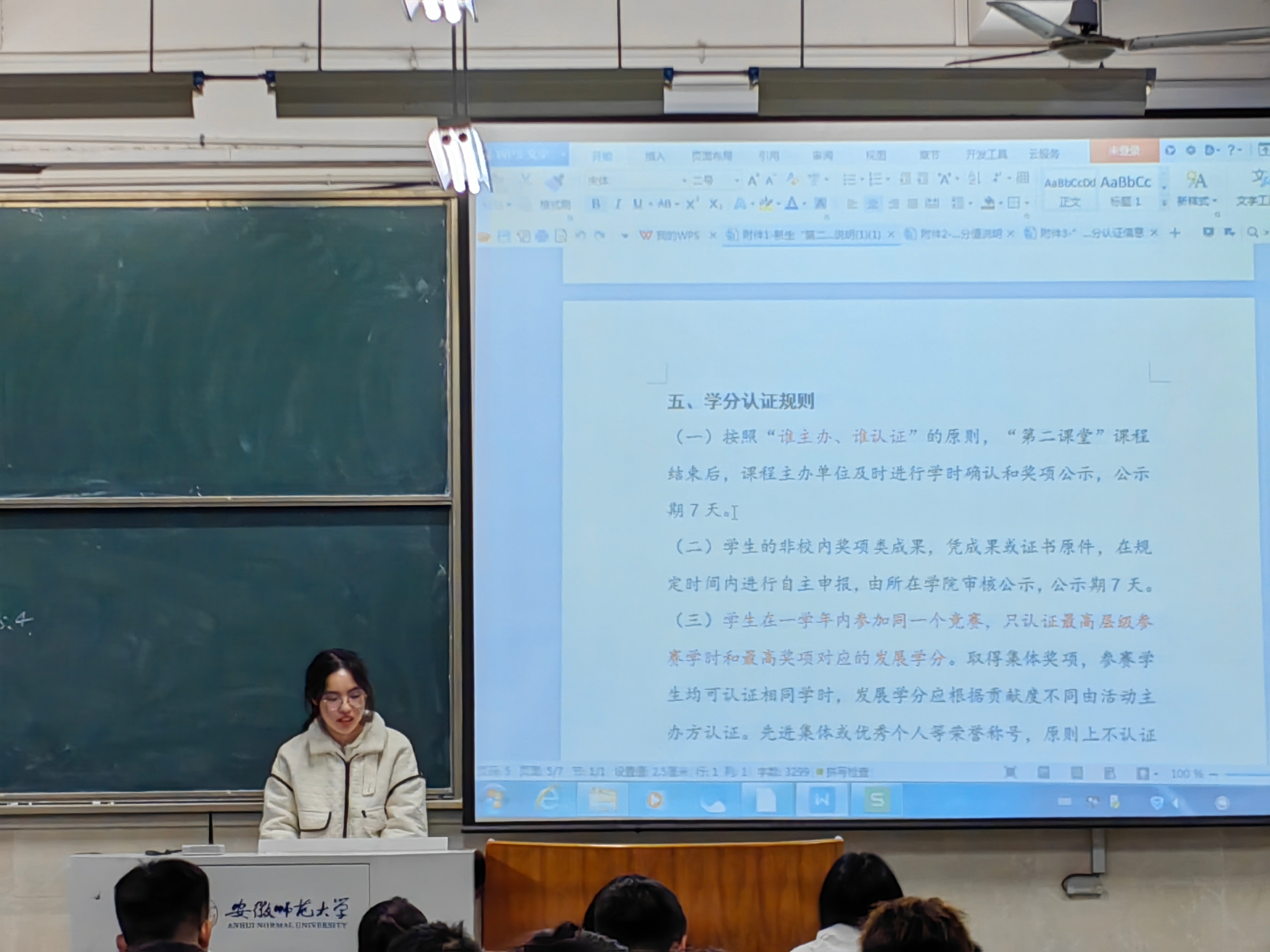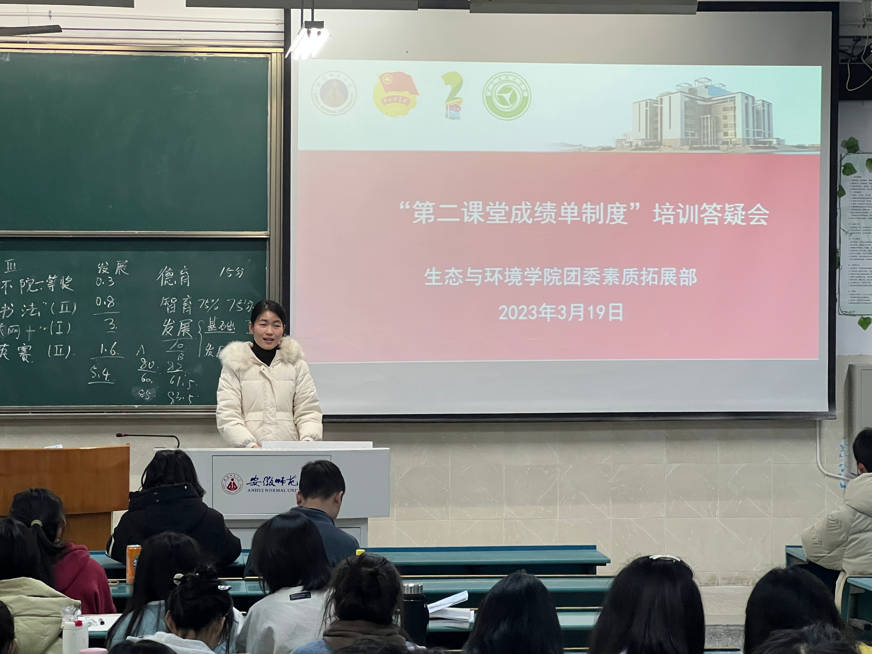 会上,学院素质拓展部负责人向同学们介绍了学分模块以及该模块对应的课程。针对课程类型、学分组成、学分认证参照标准、基础学分、发展学分等进行了详细的讲解,并分五项讲解了学分认证规则,让同学们更深入的了解“第二课堂成绩单制度“。主持人向大家介绍了基础学分、发展学分和综合测评的关系,基础学分的毕业要求。学院学生会各部门、社团负责人分别介绍向大家介绍了本部门所举办的活动并鼓励同学们积极参与,并解答了同学们关于“第二课堂”的疑问。