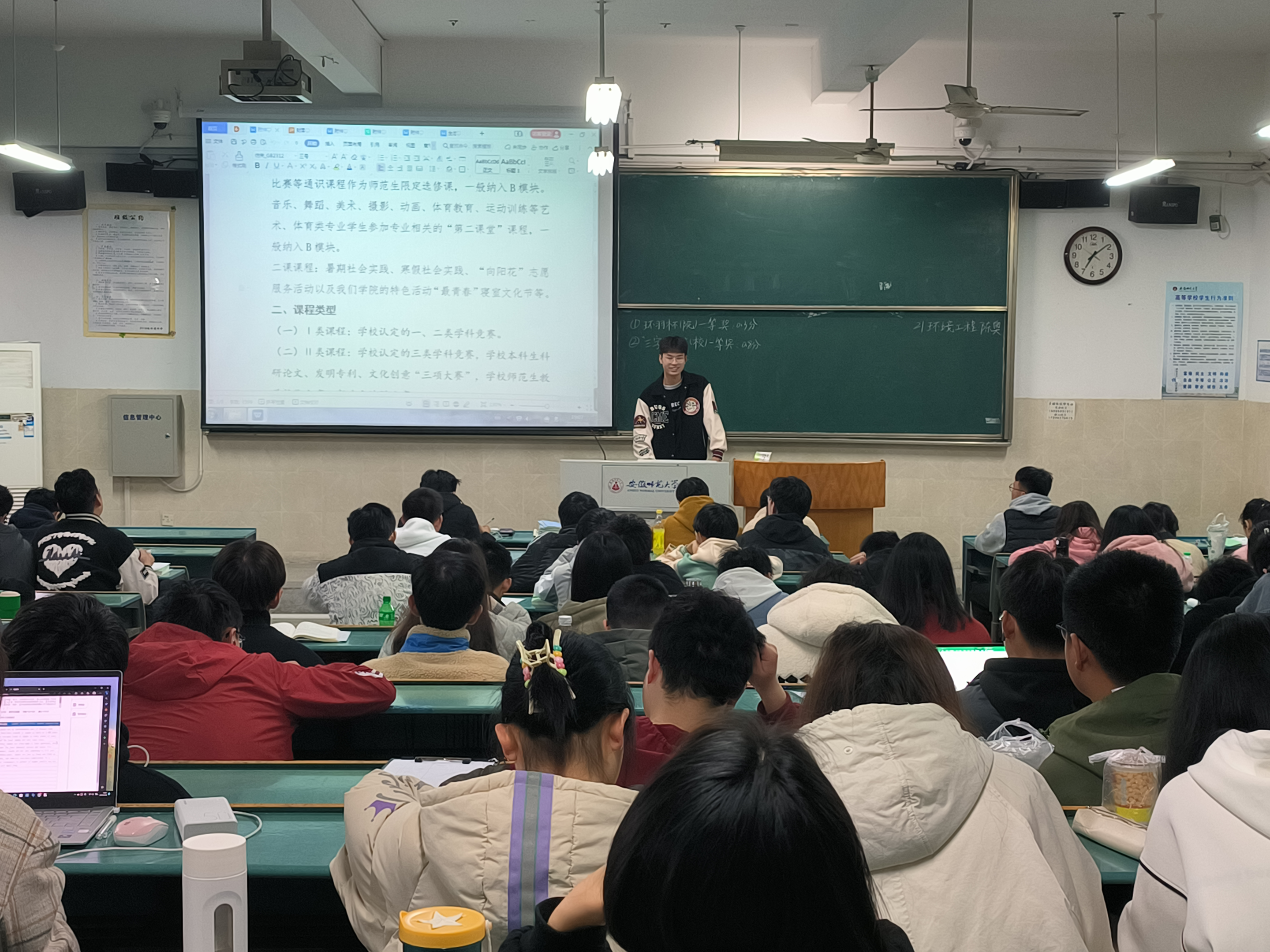 3月19日晚,学院在2022级自习教室开展“第二课堂成绩单制度“培训会,普及新生对”第二课堂成绩单制度“的认识,解答新生关于“第二课堂”学分的疑问,提高2022级新生对课外活动的热情,推动学生的课余文化生活多样化发展。2022级辅导员、院团委学生会工作人员、2022级全体本科生参加。