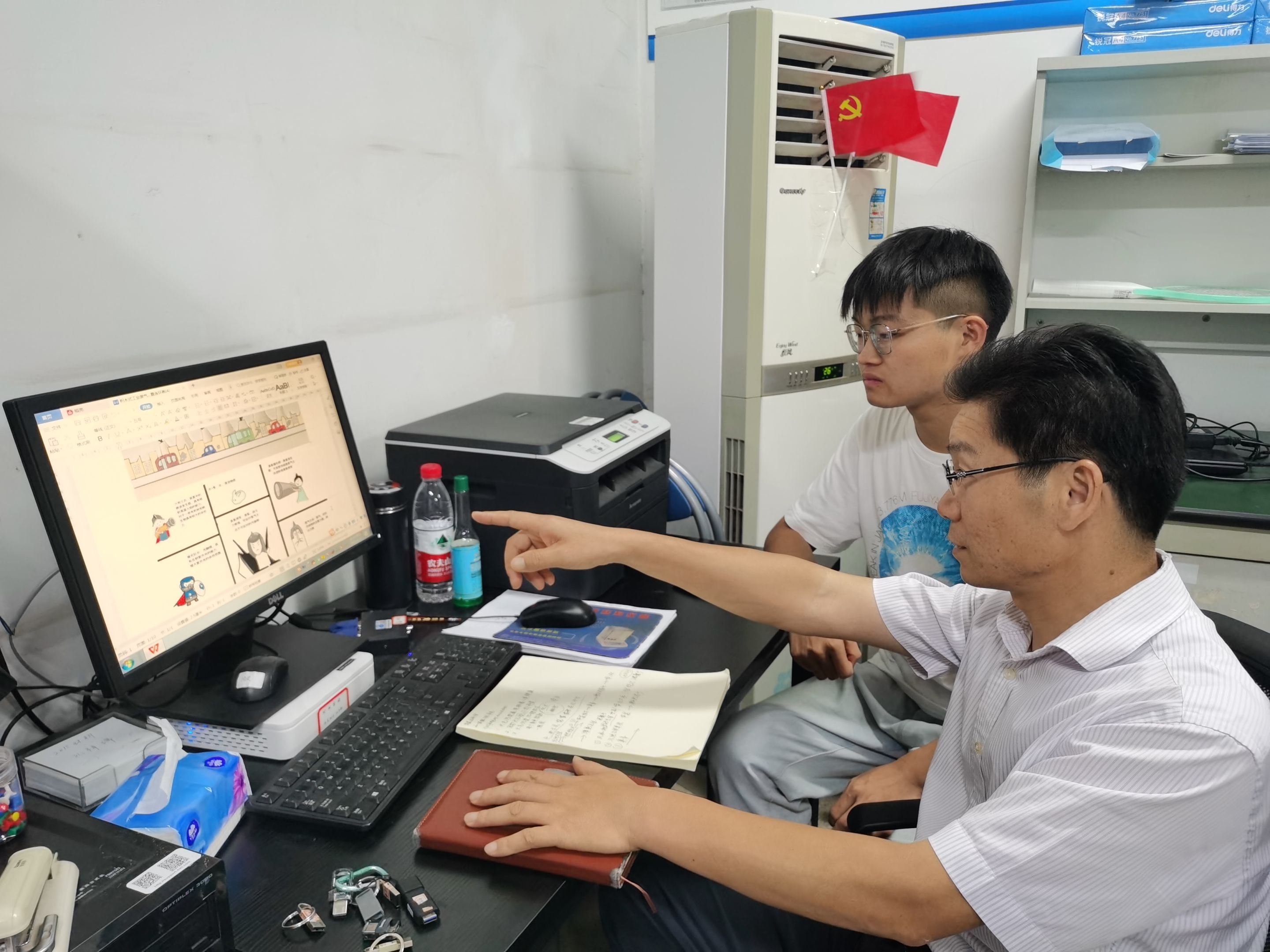 谢宗璠是陶海升课题组2019级的本科生,拿到了推免保研中科大的资格。申请推免保研,需要准备大量材料,这些材料都要导师修改、签字。一天晚上,谢宗璠想请陶海升来实验室帮自己改材料,发完消息天却下起了雨。“陶老师会不会来呢?”谢宗璠心中打起了鼓。犹疑中,陶海升推门走了进来,湿着半边身子笑道:“得亏我骑得快,不然全身都淋湿了。”他拿毛巾随便擦了擦雨水,就开始指导谢宗璠修改申报材料。“老师完全可以在电脑上改好发给我,但没想到他会冒雨赶来当面指导。”谢宗璠心中深受触动。