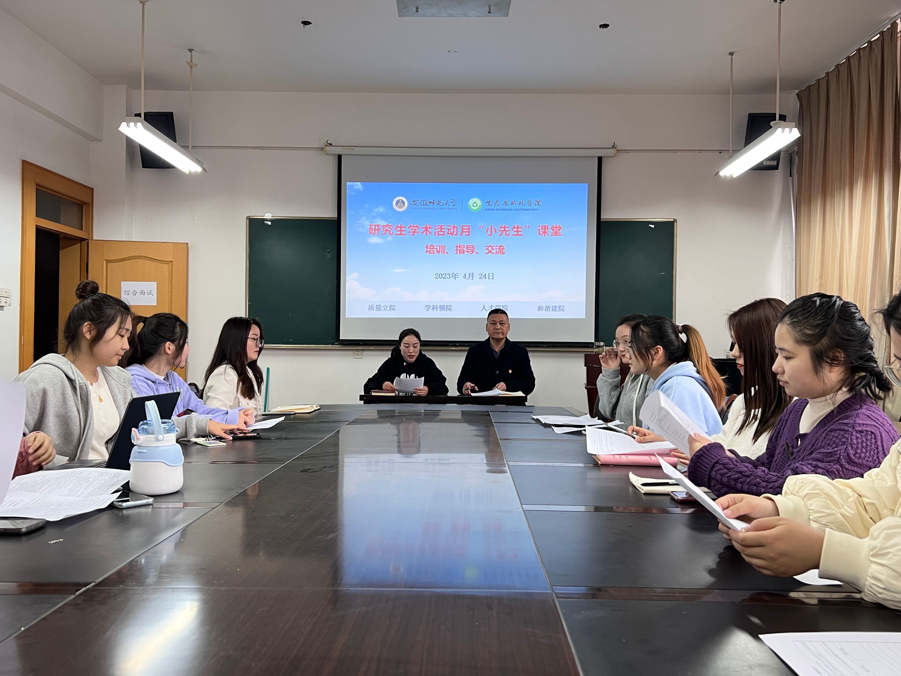 4月24日上午,为帮助“小先生”们进一步丰富理论知识储备,提升授课水平,学院在金沙城js9线路检测中心行政楼三楼会议室开展研究生学术活动月“小先生”课堂微视频录制活动,胡好远院长到会作培训指导,会议由科研副院长昝逢宇主持。