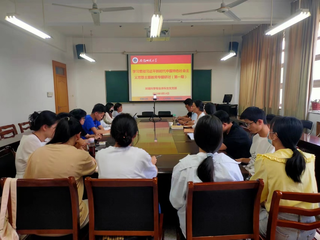 5月14日下午,环境科学专业本科生党支部在学院3楼会议室开展学习贯彻习近平新时代中国特色社会主义思想主题教育专题研讨和党课。学院党委委员、党委秘书卫正梅,支部全体党员以线下线上形式参加。活动由支部书记郑合庆主持。