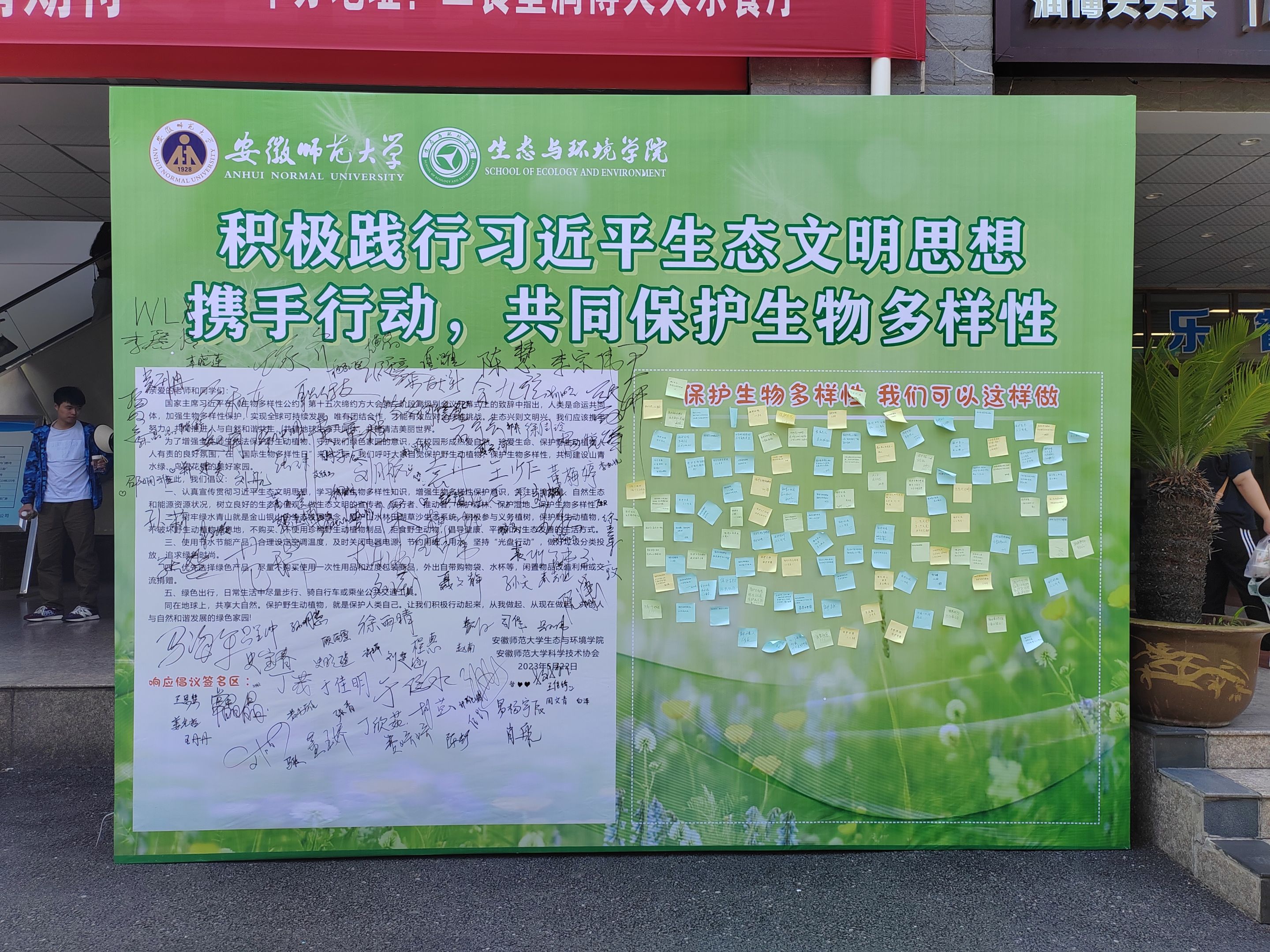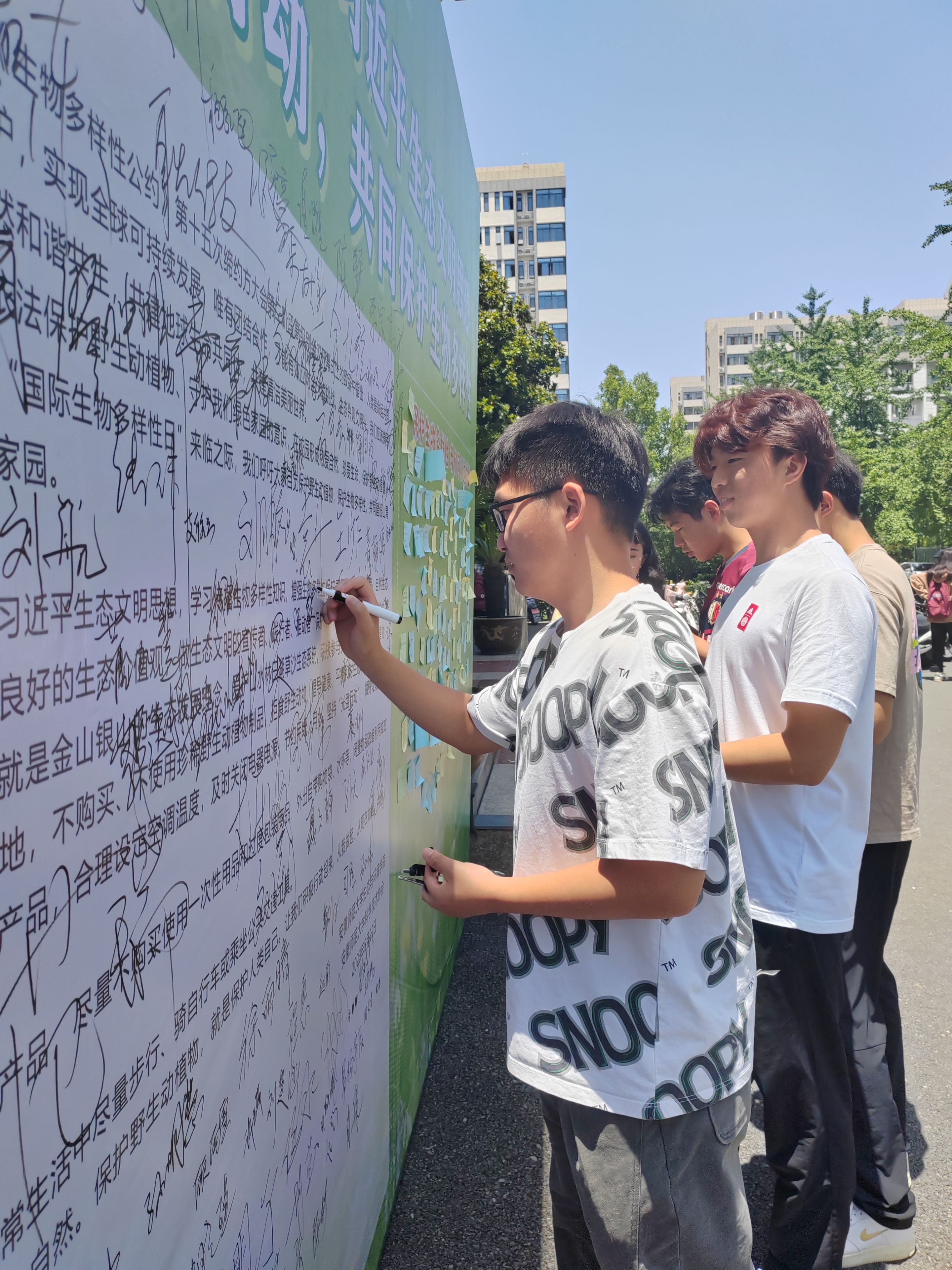 本次活动以宣传贯彻习近平生态文明思想,推动生物多样性保护为主题,通过在活动现场悬挂主题横幅、展示科普内容、生物多样性保护倡议签名、个人承诺宣言等形式,向全校师生科普生物多样性相关知识,充分调动了大家关注、参与、支持生态环保的积极性。