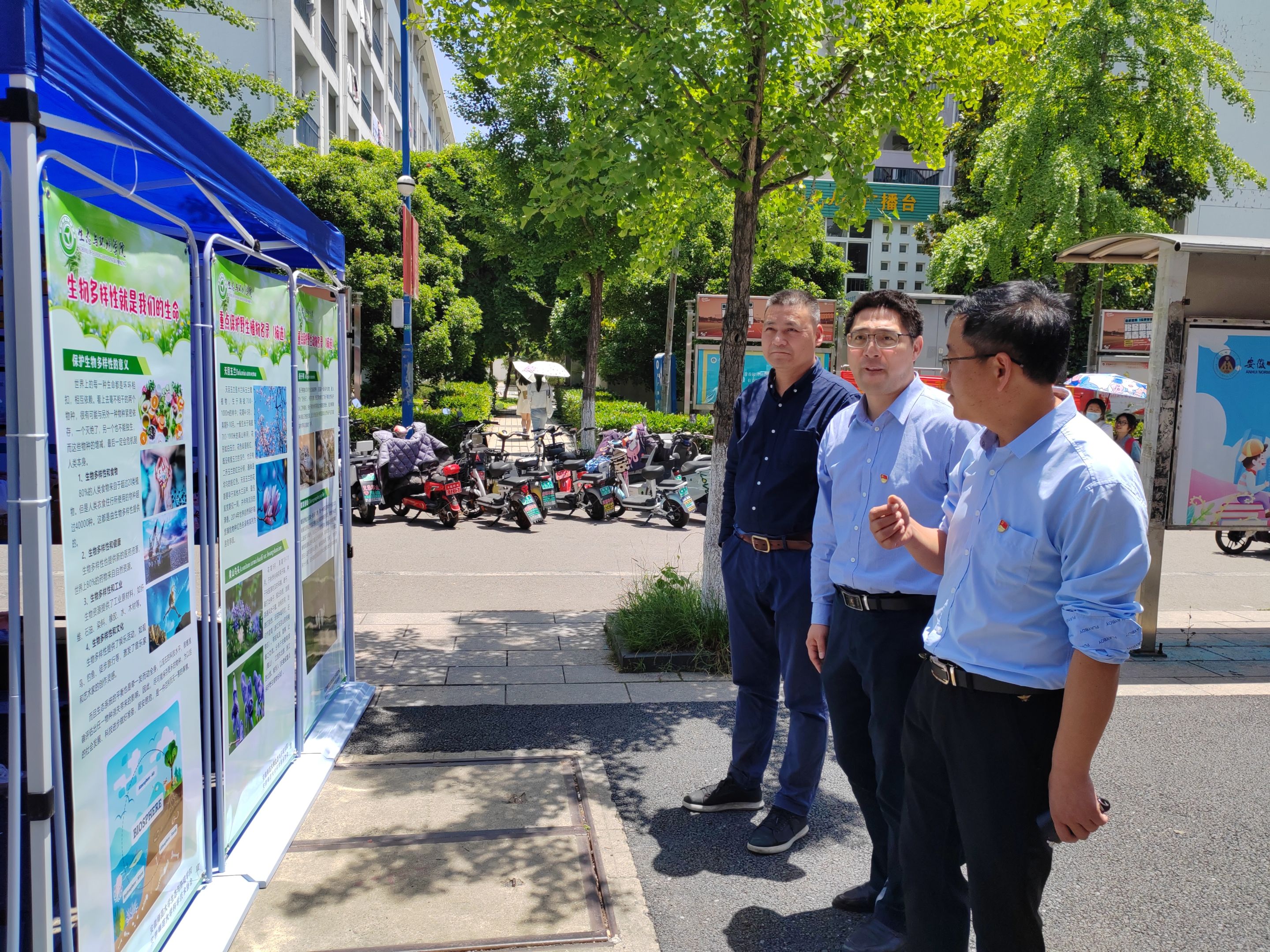 5月20日至31日是全国科技活动周,5月22日是“国际生物多样性日”。为深入学习贯彻习近平新时代中国特色社会主义思想和党的二十大精神,宣传贯彻习近平生态文明思想,推动科学普及与生态文明建设深度融合,5月23日上午,金沙城js9线路检测中心联合校科协组织生态学专业研究生党支部、环境科学与工程专业研究生党支部开展2023科技活动周系列活动之“践行习近平生态文明思想 推动生物多样性保护”科普宣传活动。校团委书记廖仲明、科协主席耿保友、宣传部副部长王少仁、研究生院副院长步献新,学院党委书记张伟、院长胡好远、副书记杨友谊等出席活动。