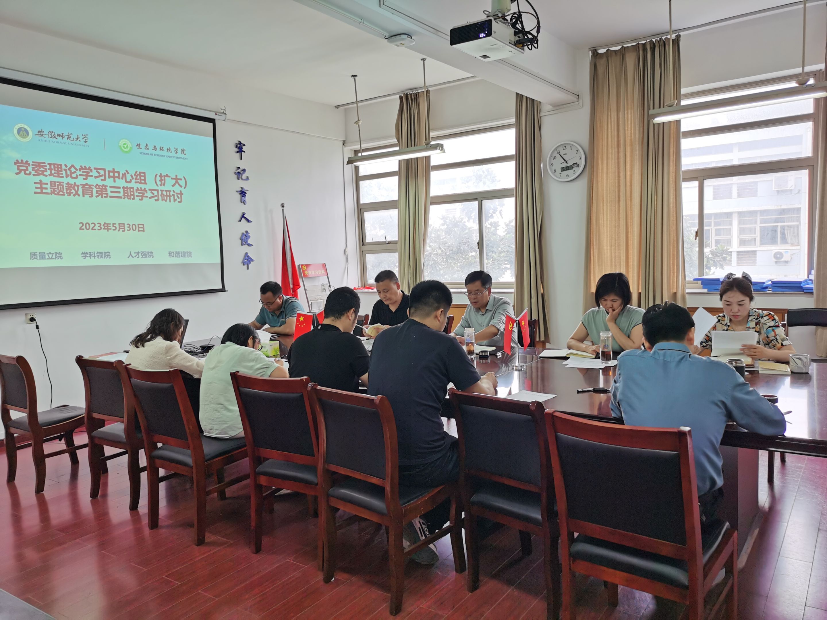 5月30日上午,学院党委在行政楼四楼会议室开展学习贯彻习近平新时代中国特色社会主义思想主题教育(第3期)学习研讨,深入学习研讨习近平总书记关于建设教育强国的重要讲话精神。学院领导班子成员、各党支部书记参加了研讨会,会议由学院党委书记张伟主持。