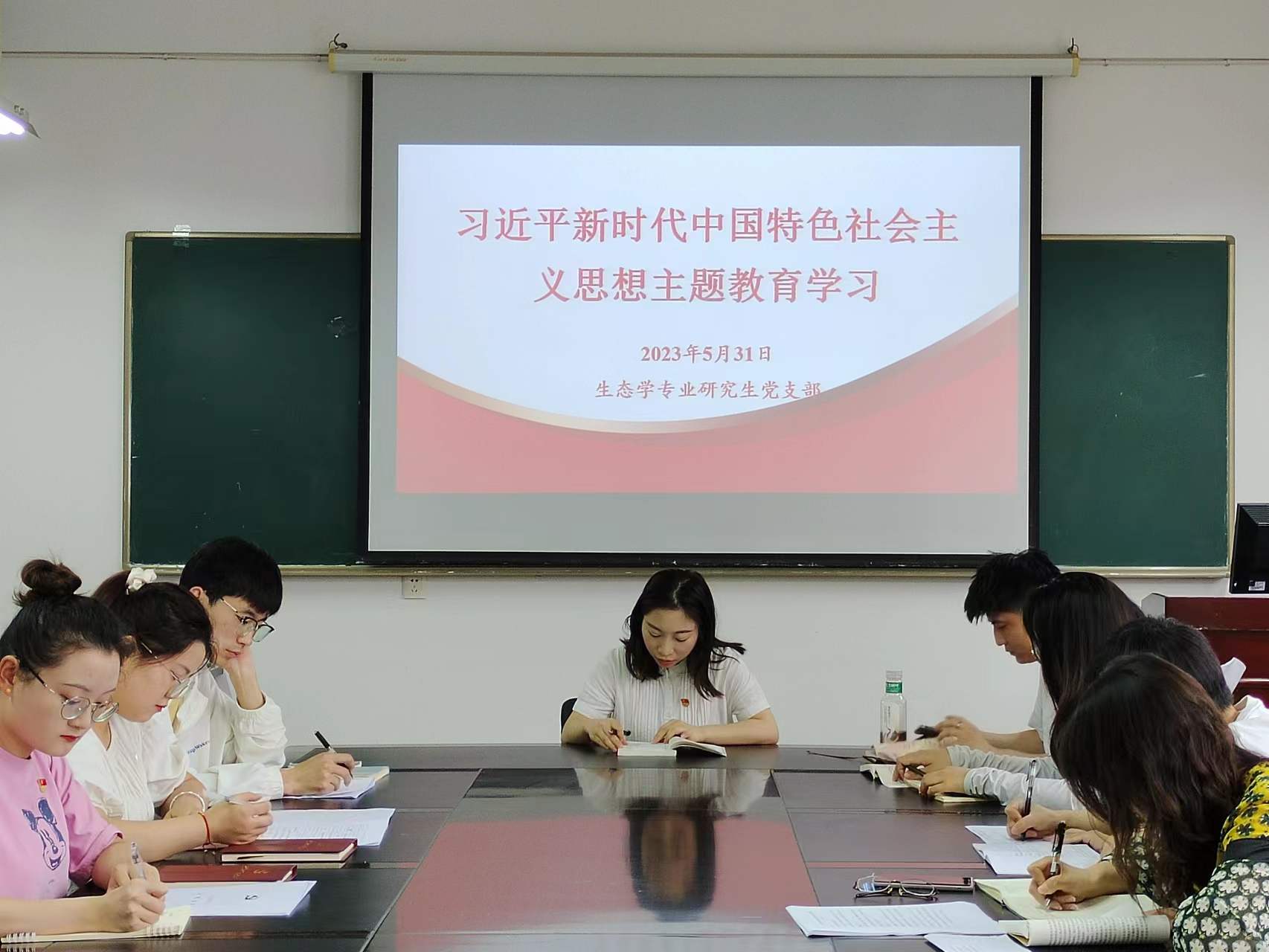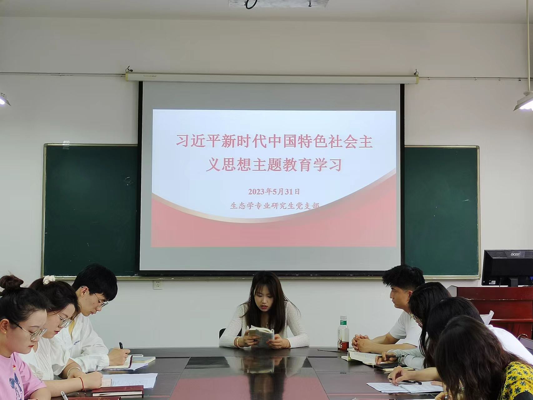5月31日下午,生态学专业研究生党支部在学院三楼会议室开展学习贯彻习近平新时代中国特色社会主义思想主题教育专题学习研讨,会议由支部书记王丹丹主持。