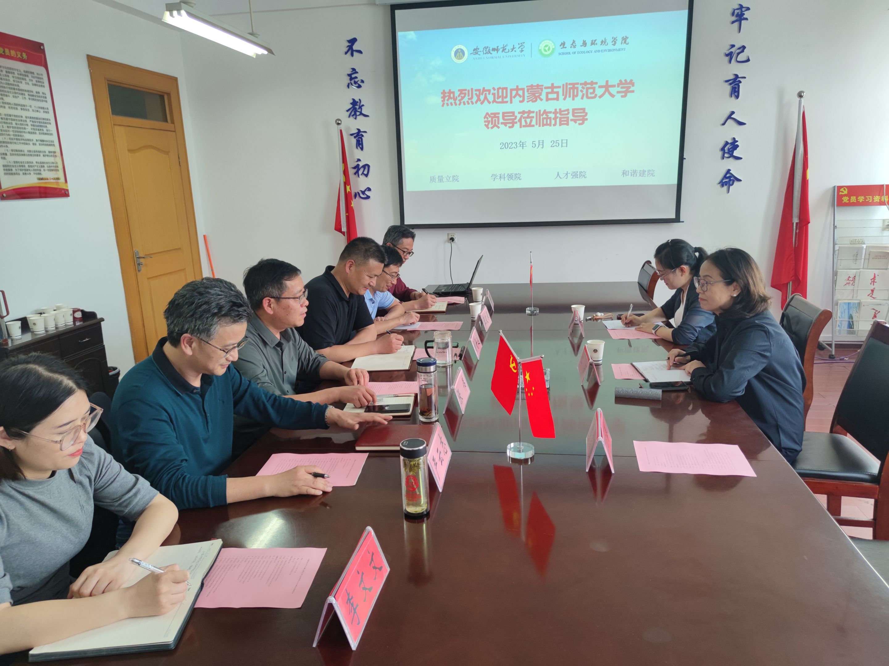 5月25日,内蒙古师范大学生命科学与技术学院院长红雨、生态学系主任吴艳玲一行来院调研交流。学院党委书记张伟、院长胡好远、副院长严云志、生态学系主任项贤领、生态学专业教师王友保、实验中心主任李文文、团委书记袁成参加交流,会议由严云志主持。
