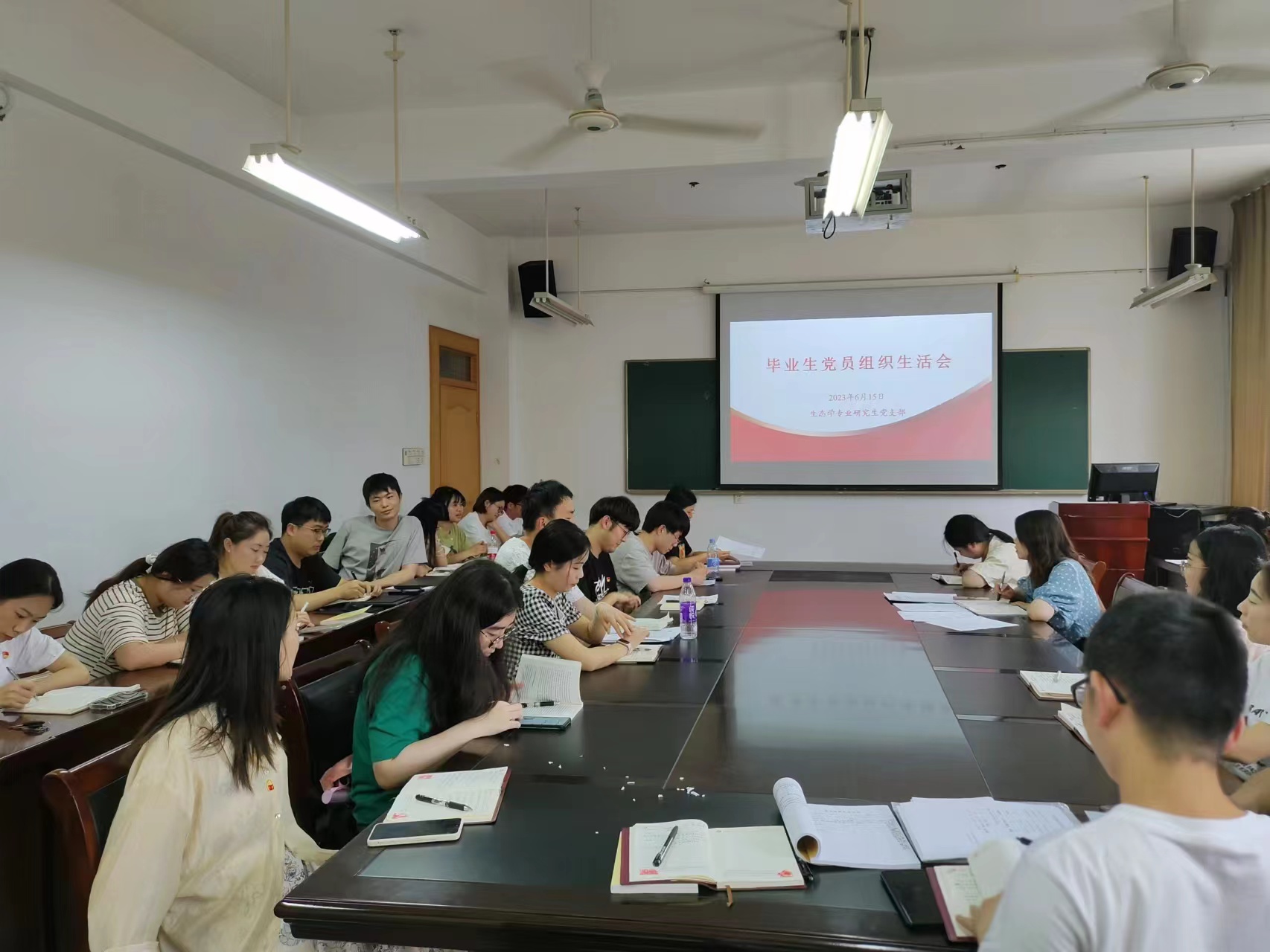 最后,支部召开了毕业生党员组织生活会。即将离校的毕业生党员分享了自己在学习、工作、生活中的重要经验和成长感悟,反思三年学习和科研工作中自身的不足和缺点,与会党员提出意见和建议。毕业生党员纷纷表示毕业后将不忘入党初心,继续保持昂扬的奋斗姿态,在实践中不断磨炼自己,争创佳绩,回报母校和社会。