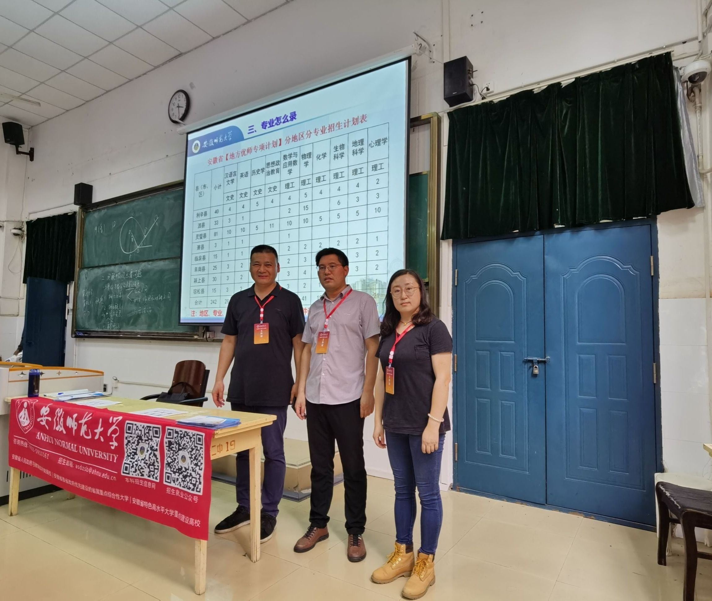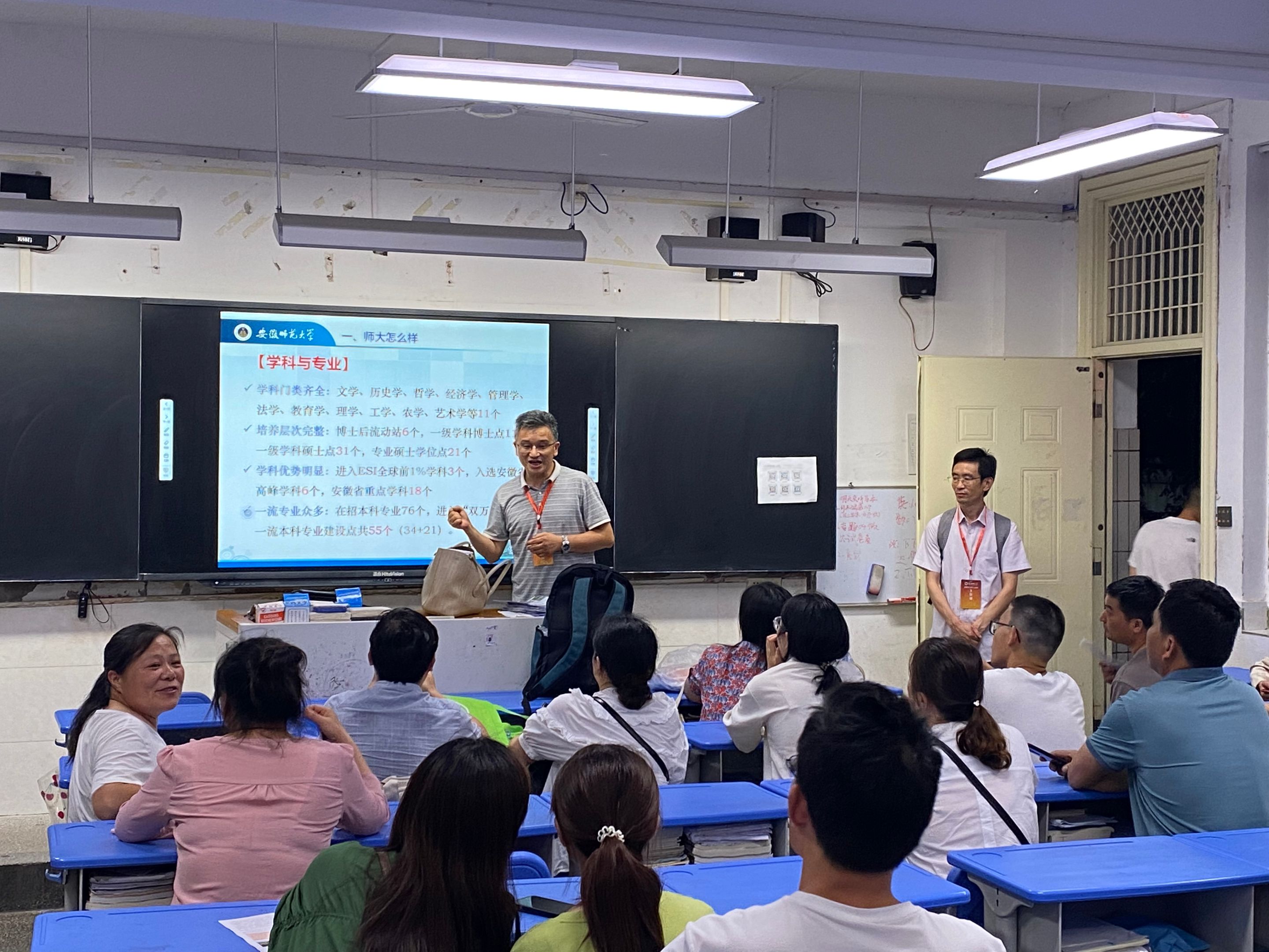 6月25日-28日,学院招宣小分队分别赴芜湖市第一中学、安徽师范大学附属中学、芜湖市第十二中学、芜湖市田家炳实验中学、南陵中学、芜湖县第一中学、长丰县第一中学、合肥市第三十二中学、合肥市庐阳高级中学、合肥工业大学附属中学共十所中学开展招宣活动,重点围绕“我校怎么样”、“今年怎么招”、“专业怎么录”和“信息怎么查”,利用线上和线下讲座和答疑等方式进行招宣。招宣小分队进中学招宣活动切实提升了安徽师范大学招生品牌形象,为后续高招及人才培养工作奠定了坚实基础。