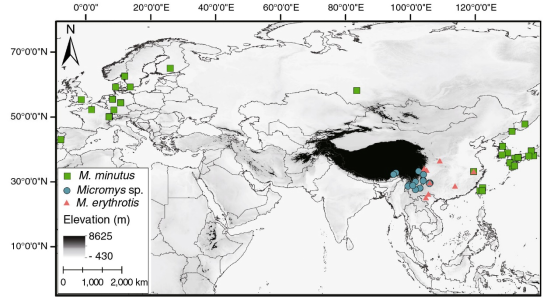 2023年,陈中正老师联合中国科学院昆明动物研究所等多家单位,结合形态、分子系统学和化石信息等数据对巢鼠属的分类和系统进化进行了更为深入的研究(Chen et al., 2023)。结果显示巢鼠属起源很早,在于1100万年前就已分化出来,其化石在5-800万年前的中新世晚期已经遍布欧洲和亚洲中北部。现生巢鼠物种应包含至少的3个有效种:巢鼠,红耳巢鼠和高原巢鼠(M. pygmaeus),其中高原巢鼠长期被认为是巢鼠的一个同物异名,其分布局限于青藏高原的高海拔区域。这3个物种的分化可能受到了横断山区隆升和上新世—更新世交替期间(约240万年前)全球气候变化的强烈影响。种群历史分析显示,巢鼠这一物种近5万年以来种群规模出现了明显的扩张,推测东亚(韩国、日本和我国东部)的巢鼠种群可能是近代伴随着农业活动由亚洲北部扩散而来。