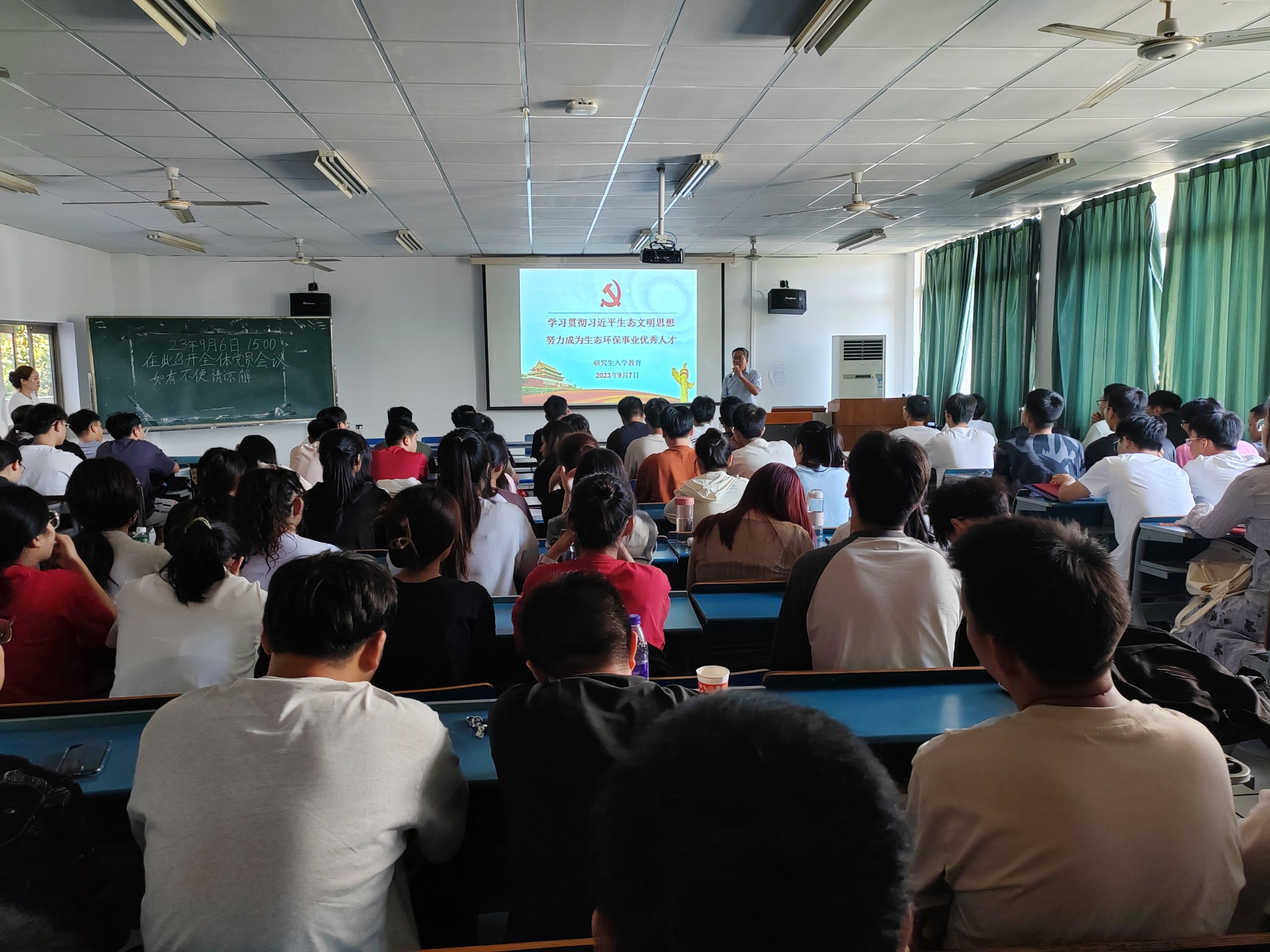 学院院长胡好远对金沙城js9线路检测中心的院史和学科学位点建设情况及发展前景进行了介绍,并做了科研诚信的专题报告。寄语同学们“坚守底线,勇攀高峰”,新时代的生态文明建设在科学研究领域和人才需求方面带来了重大机遇,希望同学们拼搏奋进,努力成为生态环境保护事业的优秀人才。