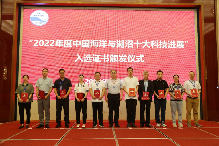 开幕式还举行了2022年度中国海洋与湖沼十大科技进展证书颁发仪式。王凡理事长为中国海洋与湖沼十大科技进展入选成果主要完成人代表颁发了证书。