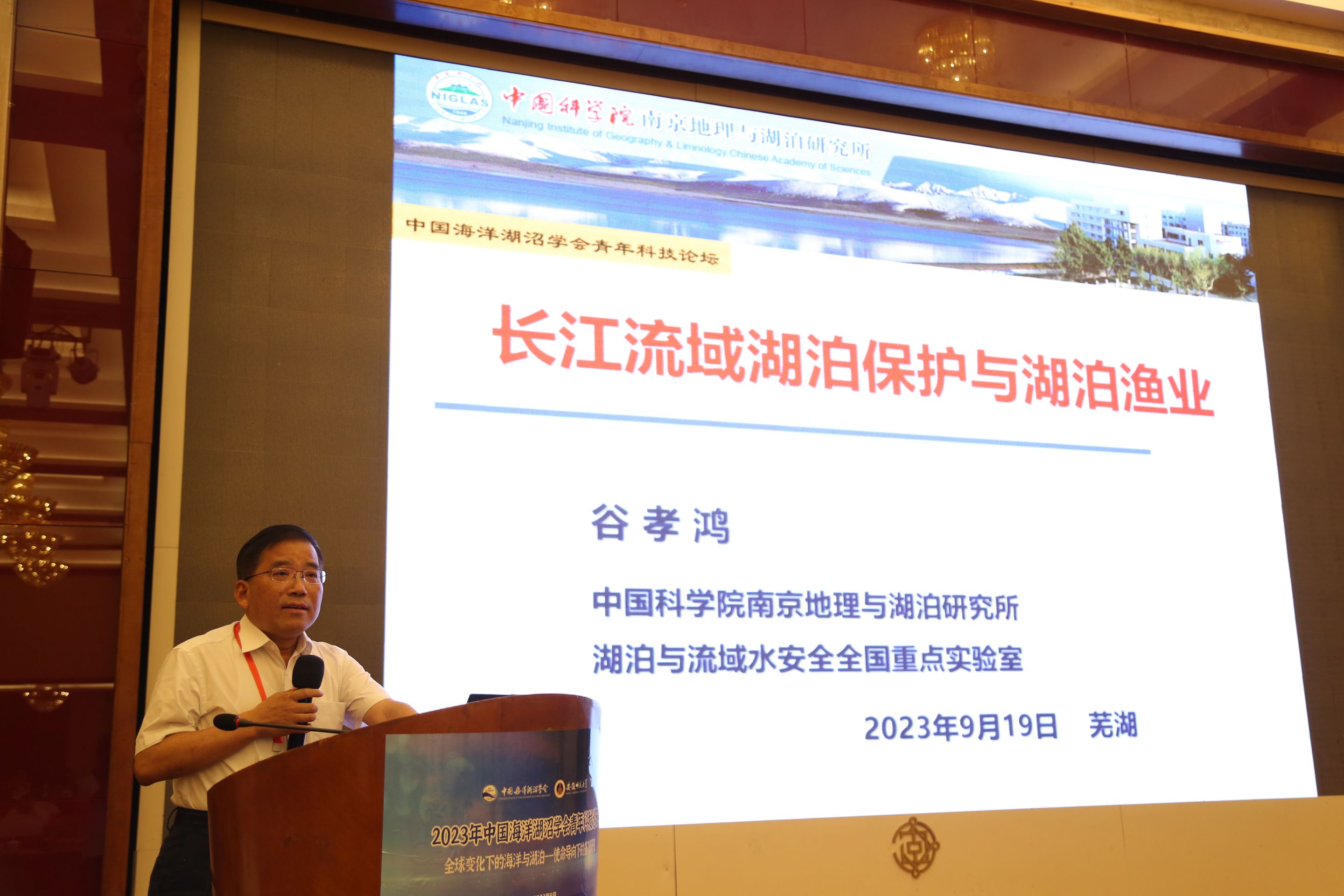 开幕式后,首先举行了学习贯彻习近平新时代中国特色社会主义思想主题教育专题党课报告会,邀请了金沙城js9线路检测中心马克思主义学院党委书记、博士生导师严宏教授以“全面建设社会主义现代化国家的基础性、战略性支撑——习近平总书记关于教育科技人才的重要论述”为题作专题报告。紧接着举行了特邀学术报告,王凡研究员、谷孝鸿研究员、金沙城js9线路检测中心席贻龙教授分别以“气候变暖背景下的中国近海“物理-化学-生物”协同演变”“长江流域湖泊保护与湖泊渔业”“我国轮虫学研究现状与思考”为题作了精彩报告。