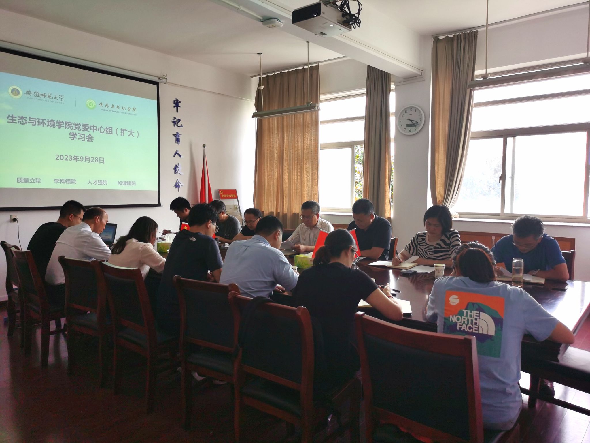 与会人员集中观看学习了《习近平主持召开新时代推动东北全面振兴座谈会强调 牢牢把握东北的重要使命 奋力谱写东北全面振兴新篇章》《习近平在黑龙江考察时强调 牢牢把握在国家发展大局中的战略定位 奋力开创黑龙江高质量发展新局面》《习近平致信全国优秀教师代表强调 大力弘扬教育家精神 为强国建设民族复兴伟业作出新的更大贡献 向全国广大教师和教育工作者致以节日问候和诚挚祝福》新闻视频,张伟领学了习近平总书记在中央政治局常委会会议审议第一批主题教育总结情况和第二批主题教育安排时发表的重要讲话精神、《习近平:始终干在实处走在前列勇立潮头 奋力谱写中国式现代化浙江新篇章》《习近平:牢牢把握新疆在国家全局中的战略定位 在中国式现代化进程中更好建设美丽新疆》《习近平致信祝贺国防科技大学建校70周年》,院长胡好远领学了习近平总书记重要文章《在文化传承发展座谈会上的讲话》,院党委副书记杨友谊领学了《习近平回信勉励安徽省潜山野寨中学新考取军校的同学们》,副院长甘为民领学了《习近平给东北大学全体师生回信》,副院长严云志领学了《韩俊在全省生态环境保护大会上强调 加快建设山水秀美的生态强省》。