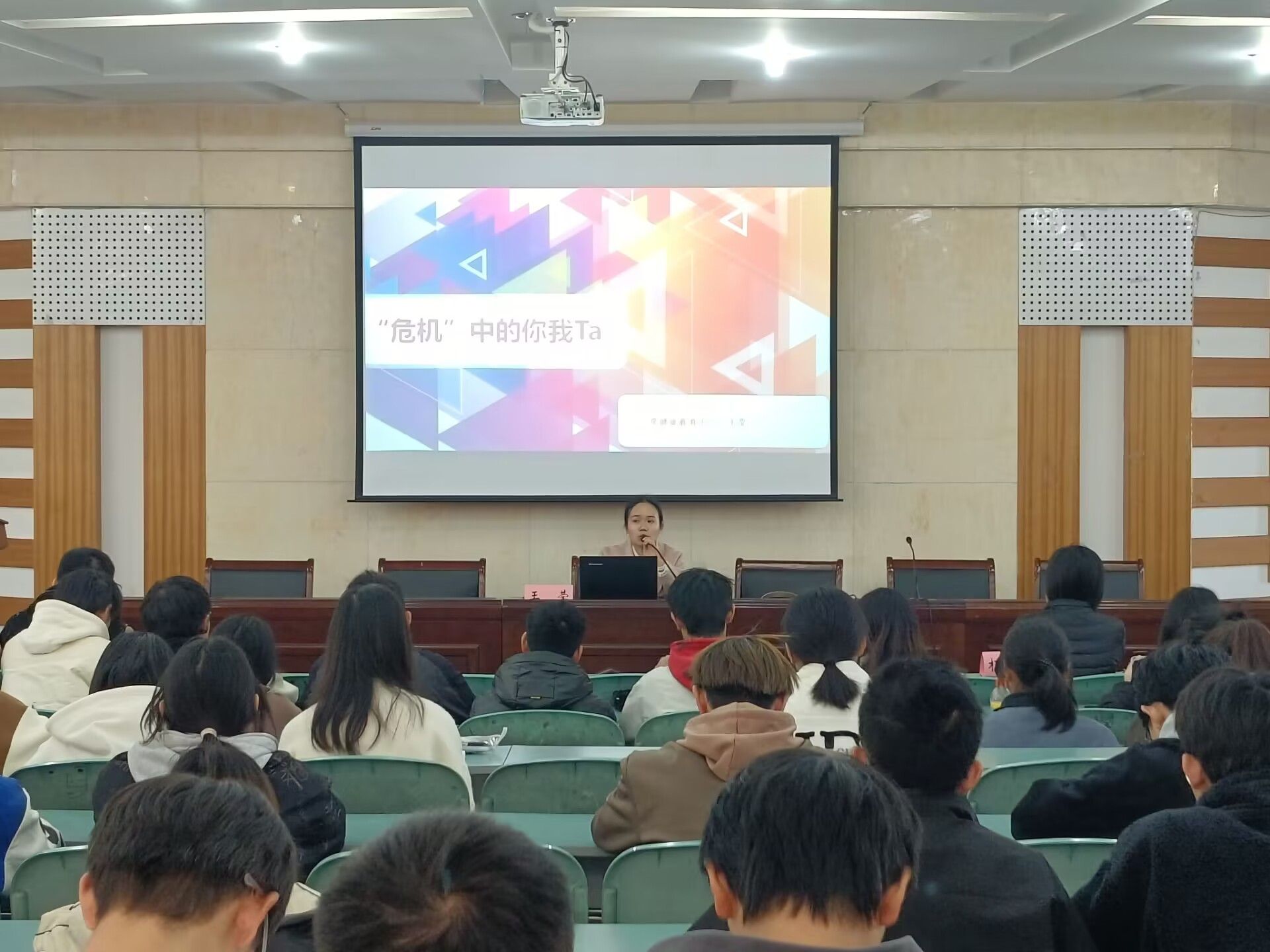 培训会上,王莹以“危机中的你我ta”为题,介绍了心理健康危机定义,用具体的案例阐述了朋辈力量在学生心理健康危机事件中发挥的重要作用。并从ta们、我们、我们和ta们等三个方面重点介绍了此次培训的内容。在“ta们”方面,重点阐述了心理问题的表现、成因以及常见类型;在“我们”方面,提醒同学们照顾好自己、惠及他人;在“我们和ta们”方面,提出了提升幸福的建议。