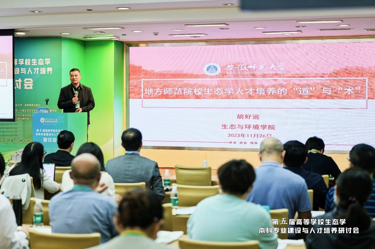 院长胡好远、副院长甘为民、生态学专业负责人项贤领和青年教师程新峰参加了在广州举办的“第五届高等学校生态学本科专业建设与人才培养研讨会”。胡好远院长在会上作了题为“地方师范院校生态学人才培养的道与术”的报告,分享了学院在人才培养、专业、课程、师资和学科平台建设等方面的理念和举措,得到了与会领导专家的肯定。该会议由中国生态学学会、华南农业大学和高等教育出版社联合主办,来自50余所高校近200位领导专家参加了本次会议。