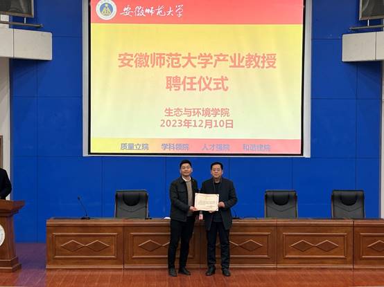 会上还举行产业教授聘任仪式,胡好远解读了芜湖市产业教授相关文件精神,指出学院将以此次产业教授聘任为契机,充分发挥校企资源优势和人才优势,积极推动校企协同育人机制的创新与发展,助力提升学院人才培养质量及社会服务能力。张伟向郝明旭颁发了聘书。