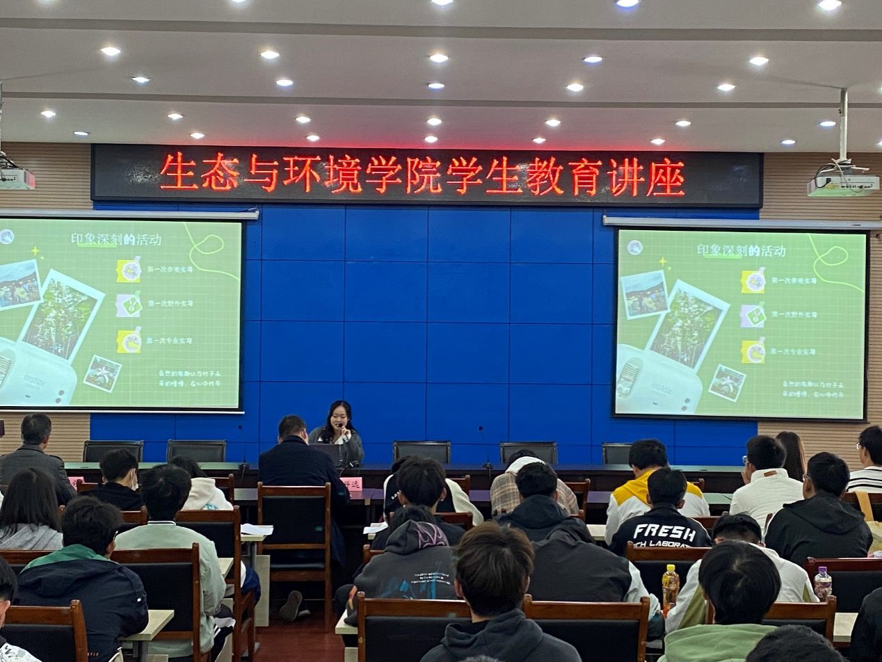 郝明旭以《道阻且长,行则将至——2023级本科新生职业规划经验分享》为题,从生态环境专业的就业去向、大学四年生涯规划、个人经历分享等方面为同学们作了详细的讲解,为同学们的大学成长规划提供了宝贵的指导,也为同学们今后就业做了指引。他以“凿井者,起于三寸之坎,以就万韧之深”和“树高千尺、营养在根”为结语,鼓励同学们从极细微的积累开始,注意加强基础知识学习,只要坚持不懈、持之以恒,必然成就事业。