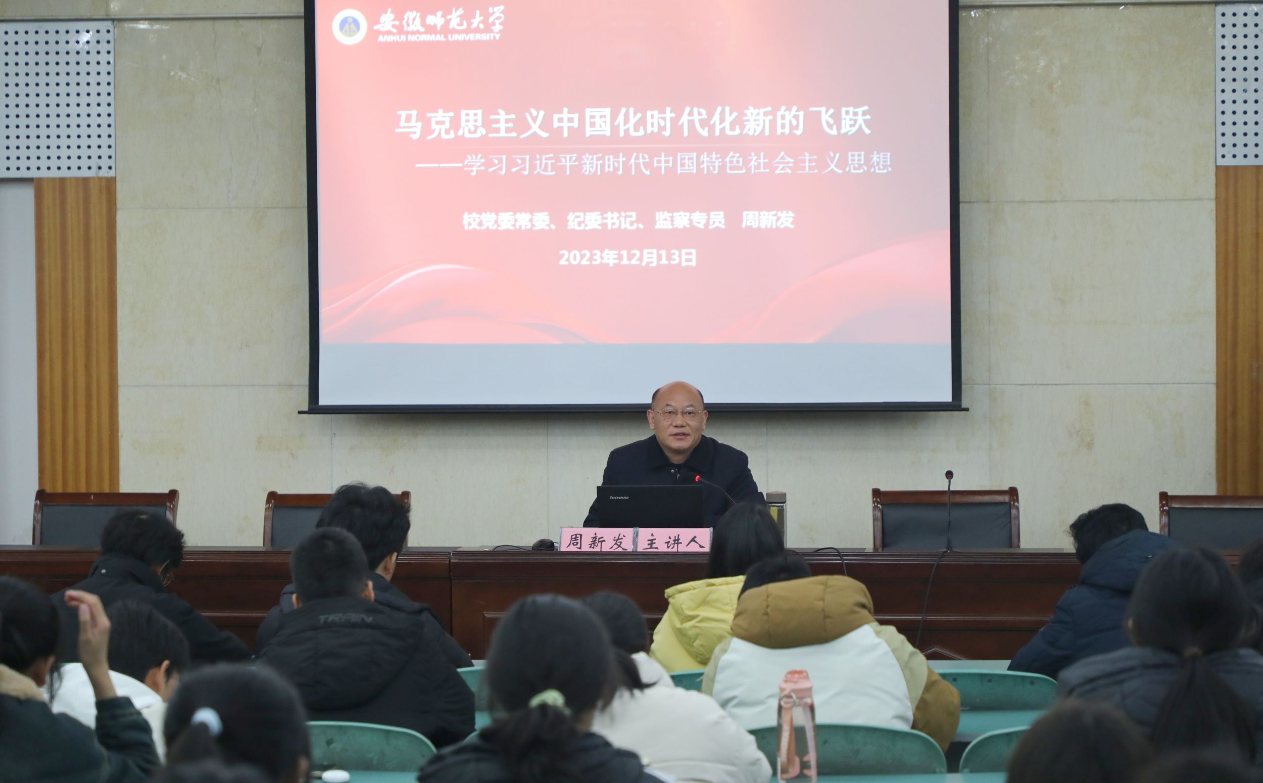 12月13日下午,校党委常委、纪委书记、监察专员周新发以《马克思主义中国化时代化新的飞跃——学习习近平新时代中国特色社会主义思想》为题,为学院2023级本科生讲授“形势与政策”课暨思政理论课。学院党委书记张伟、党委副书记杨友谊、副院长昝逢宇、严云志、2023级环境工程专业本科生参加报告会。报告会由张伟主持。