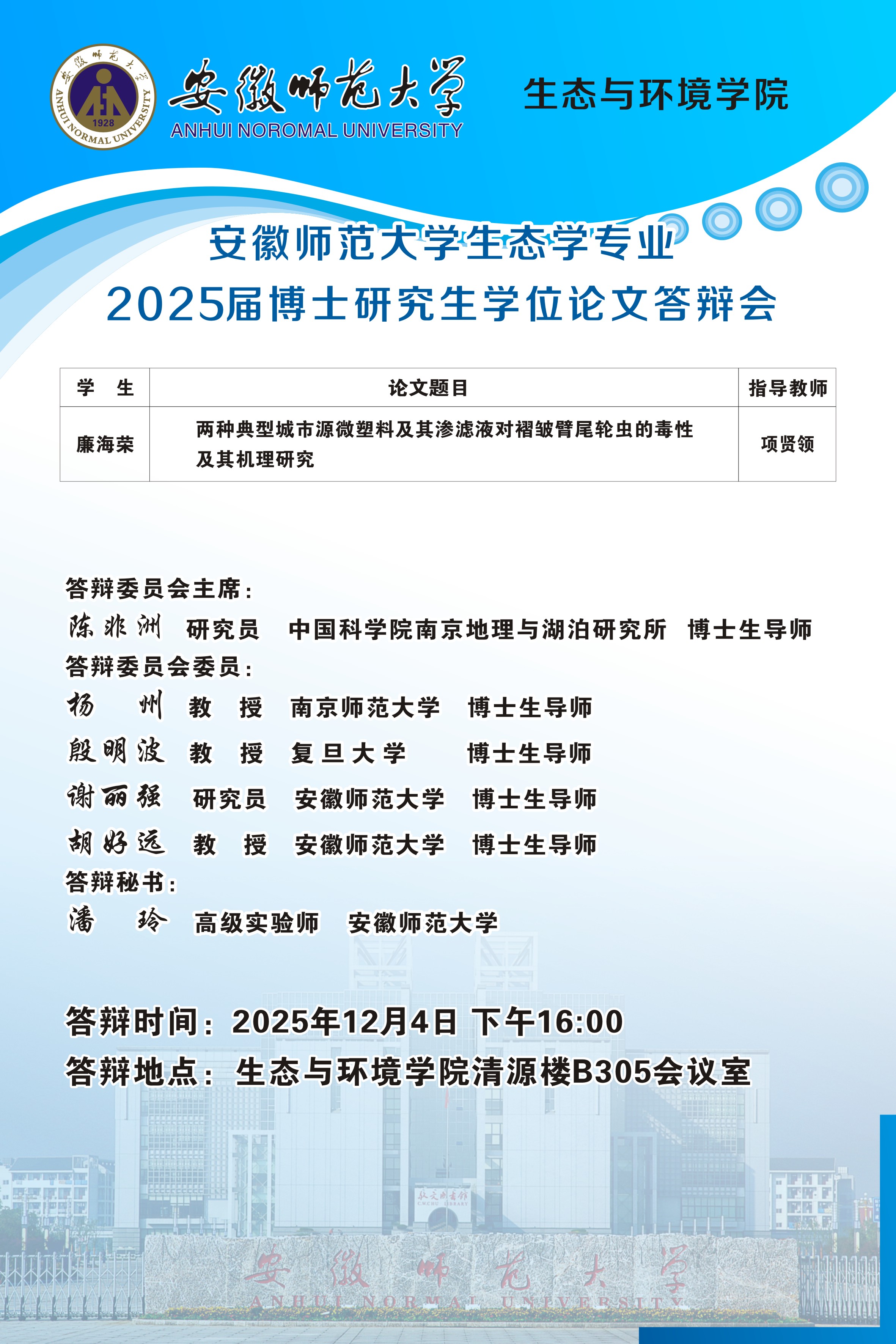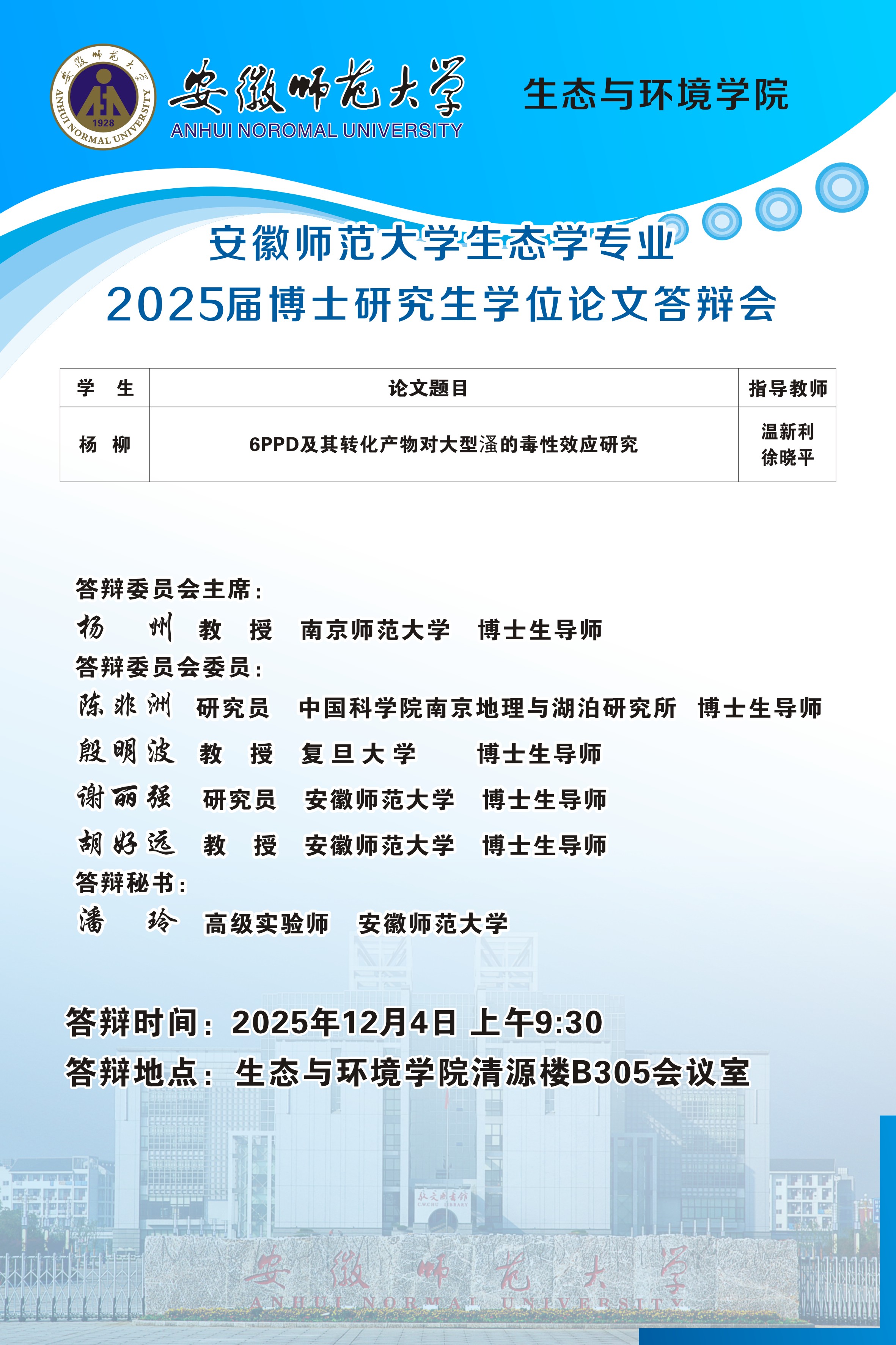 金沙城js9线路检测中心2025年生态学专业博士研究生答辩